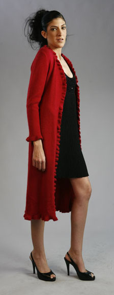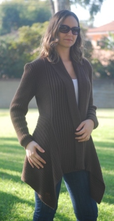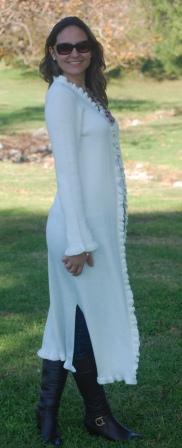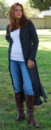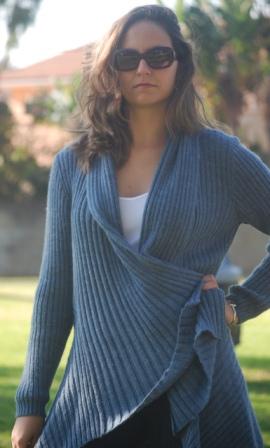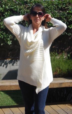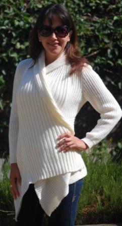 A Nice length sweater. Flown Asymmetrical in the front, in the back fits really nice, a different stitch in front and back makes this design beautiful. No buttons. But it should be worn lightly wrapped or with a brooch or belt or even hooded. Available From XS to XL . Available upon request for plus women. Available also in custom orders. We have some suggested colors for this style (see color suggestion) (see measurement chart for sizes). Keep inventory