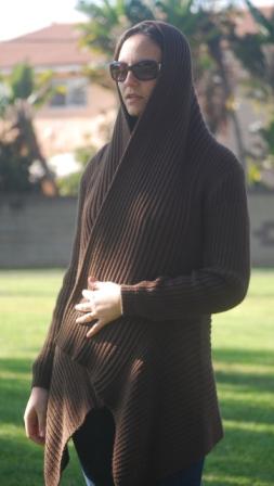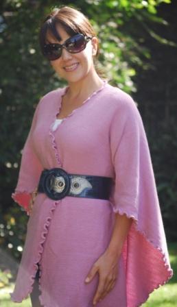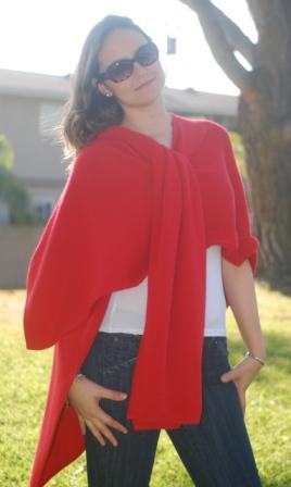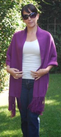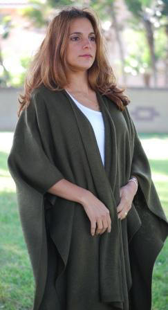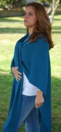 This wrap is versatile. It could be worn open, belted or with a brooch. The Wrapping showing in these pictures are also an option to wear this beautiful garment, the fiber is very light weight and holds different shapes. One size fits all. Available upon request for plus or petit women. Good in every color (see palette). Most Colors in inventory