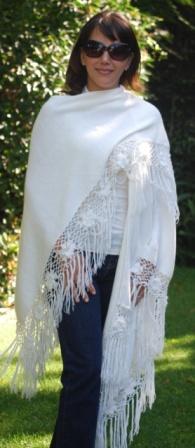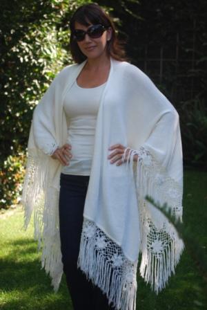 Classic Plain Shawl but with beautiful hand made crochet on the edge. Elegant and Classic. A great accessory for those elegant nights out! Light weight but a great comfy sensation! One size fits all. Available upon request for plus or petit women. Good in every color (see palette). Small inventory