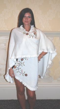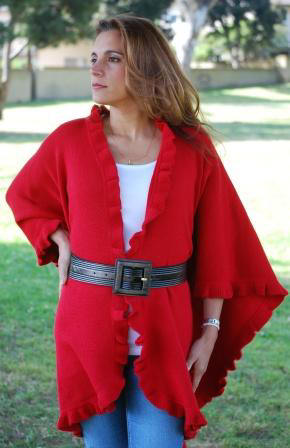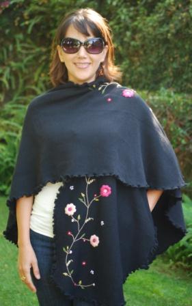 Cape with light Ruffles, handmade embroidered. This ¾ cape is elegant and simple; the handmade embroidered design gives it a delightful touch. It could be worn open, lightly wrapped or with a brooch. Handmade work one ok a kind in every single piece. One size fits all. Available upon request for plus or petit women. Good in plain colors that contrast with embroidered (see color suggestion). Hand Made Item. We keep small inventory of it.