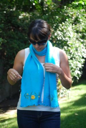 A Cute Scarf with an elastic string that allow a very nice look! One size fits all. Available upon request for plus or petit women. Good in every color (see palette). Small inventory