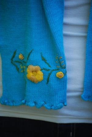 Handmade Embroidered with slight ruffle on the edge. It is a beautiful detail on you. One size fits all. Available upon request for plus or petit women. Good in every color (see palette). Small inventory